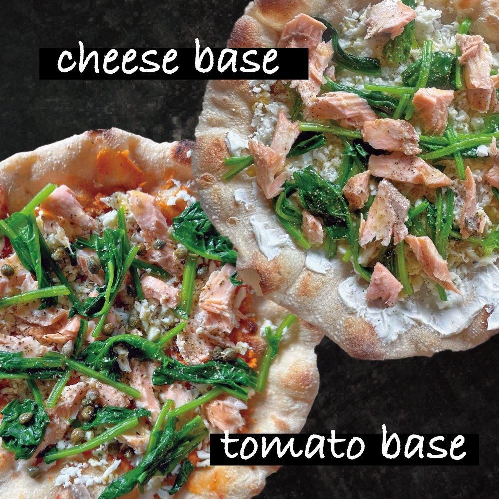 【トマトベース】マリナーラソース、サーモン、ほうれん草、ラテチーズ、ケイパー
